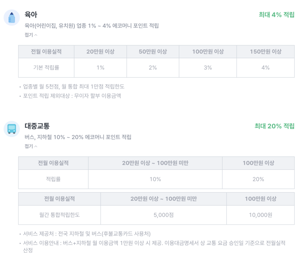 | 전월이용실적 | 30만원이상 | 50만원이상 | 100만원이상 | 200만원이상 |